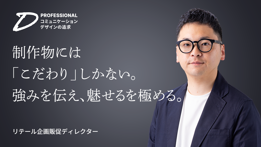 DNPコミュニケーションデザイン(以下、DCD)では、企画・制作における、多くのコミュニケーションのプロが活躍しています。そうしたプロフェッショナルたちにスポットライトを当てる企画、題して「D-Professional」。今回は、リテール業界のクライアントに伴走し、さまざまな販促ツールの企画・制作を専門とする東日本CXデザイン本部の国分裕一郎です。