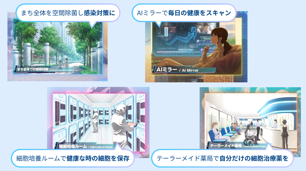 ニプロ・中野様:アニメーションの内容も、約7分という短い尺の中でニプロらしさ、ニプロが「オモウ(意欲)=チカラ(技術力)」で実現しようとしている未来を、うまくまとめていただきました。特に「衛生、遠隔診療、再生医療、透析治療」というニプロの注力している4つの分野において、技術が進歩すると具体的にどんな医療課題が解決され得るのか、とてもわかりやすく描かれています。