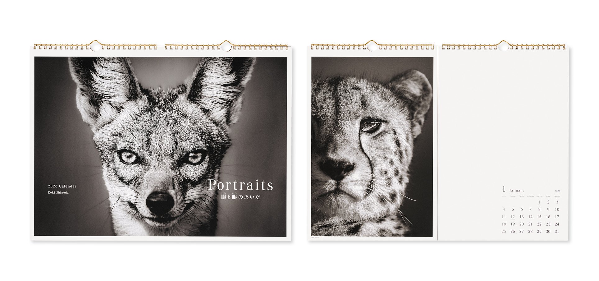 写真家 篠田岬輝氏が、サバンナに生きる野生動物を「種ではなく個」として捉えたポートレート写真のカレンダーです。大自然の中、個々の動物と時間をかけて関係性を築き、対峙(たいじ)するかのように写し出しています。印刷は、2色のグレーと黒のインクを用いたトリプルトーンで行い、さらにニスも分厚く盛ることで、銀塩写真プリントさながらの存在感と立体感を表現しています。また、暦ページと写真ページをセパレートした2連製本とすることで、めくる楽しみに自由度を持たせ、細部までこだわり抜いた一冊に仕立てました。