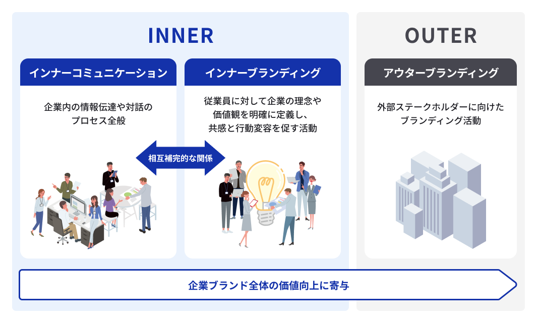 1. インナーブランディングとアウターブランディング、インナーコミュニケーションの違い