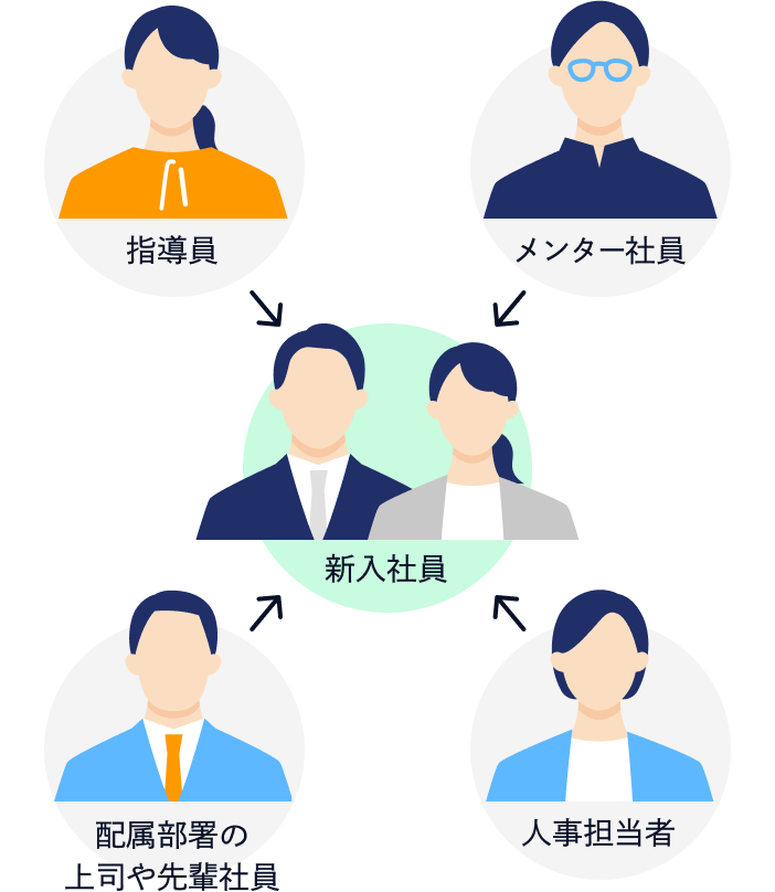 経験や知識が豊富な人が、経験の浅い人(メンティ)に対して、仕事やキャリア、時には人生全般における助言や指導を行い、成長をサポートします。